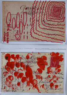 Playing with a photo of a seaside shelter at Birchington, replacing sections with brightly coloured paper provided a contrast to the 'painterly' peeling woodwork .