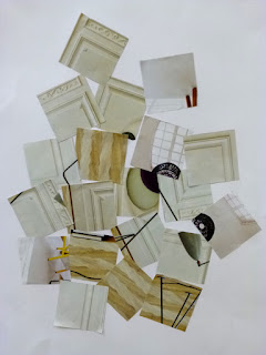 This week in Contemporary Collage we were tracing shapes and accurately cutting out and inserting replacements in coloured paper ( 'marquetry') and using grids , cutting and swapping ('cubomania')