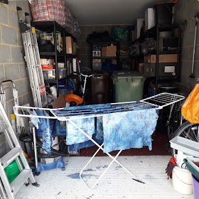 Clearing  and  packing up took a while  and then Glenys took me and the kit home and as it was raining (!)  I set up my wet items on the  balcony airer in  my garage  ( no sinks here, it doesn't even have any light) which left nice marks on the concrete! The following day I  set up the airer in the garden to dry properly .